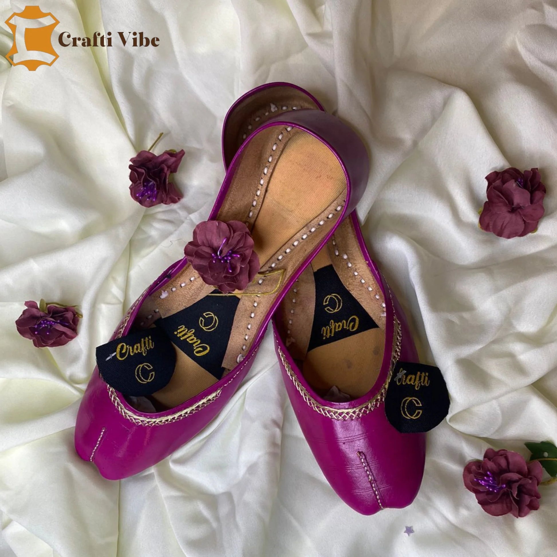 Each pair is handcrafted by skilled artisans, blending traditional charm with modern elegance. Made with soft genuine leather and cushioned soles, these khussas offer all-day comfort. Perfect for weddings, festive events, or casual outings.